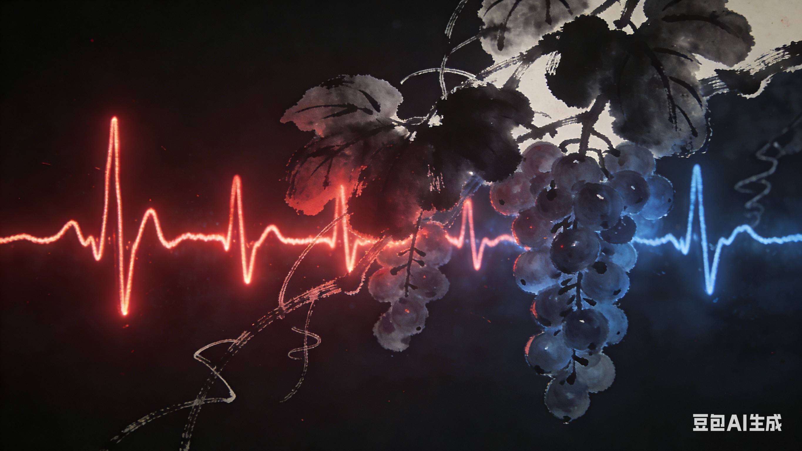 书画的笔触,是艺术家最直接的生命脉动。我们将《墨葡萄图》那疾涩相生的狂草线条,转化为一道起伏剧烈的‘心电波’。