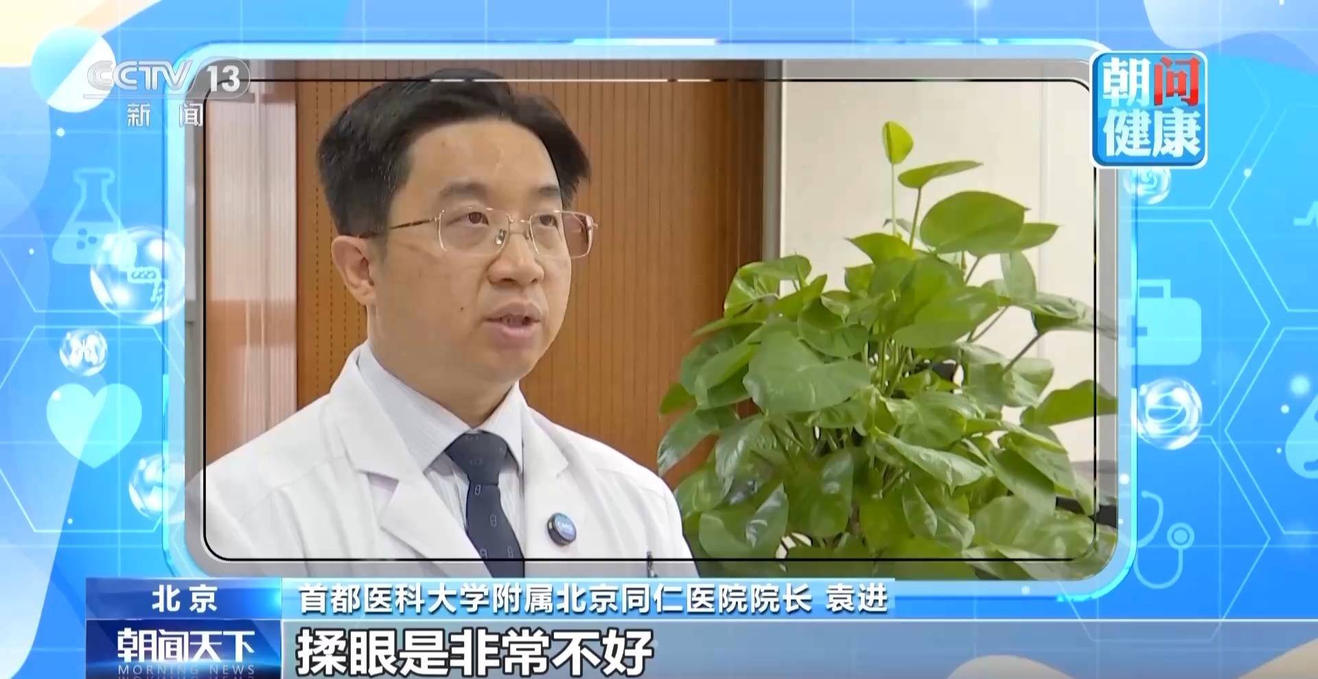 首都医科大学附属北京同仁医院院长 袁进:揉眼是一个非常不好、甚至有一定风险的坏习惯。揉眼过程中会加重眼部血液循环,导致更多炎症介质释放。最新研究还发现,过敏患者如果长期、频繁揉眼,可能会破坏角膜的力学结构,从而显著增加发生圆锥角膜的风险。